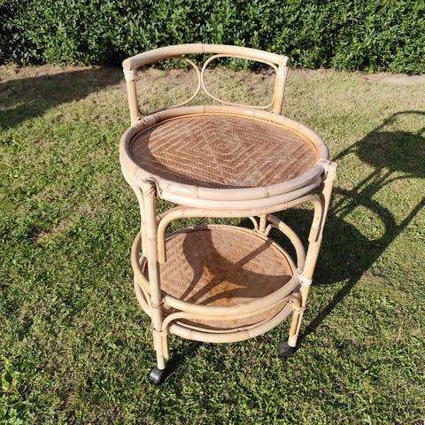 Flot drinksbord i bambus med 2 runde bakker a 40cm i diameter, alt er i ok stand.