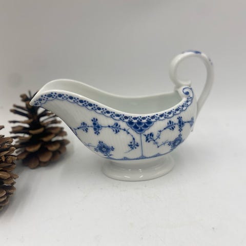 Porcelæn, Saucekande, Royal Copenhagen, Saucekande (nr. 1/583) i halvblonde musselmalet fra Royal Copenhagen. 1. sort. Desværre med limet hank.