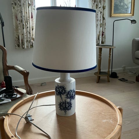 Super dekorativ retro bordlampe med tidselmotiv fra Royal Copenhagen. Oprindelig skærm medfølger.