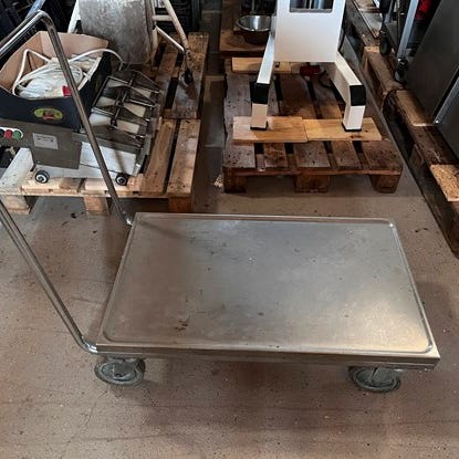 Fin transportvogn. I perfekt stand. Rustfrit stål. Roterbare hjul på alle 4. 2 kan låses. Til køkken eller andet. Mål.80x50x30 cm.
