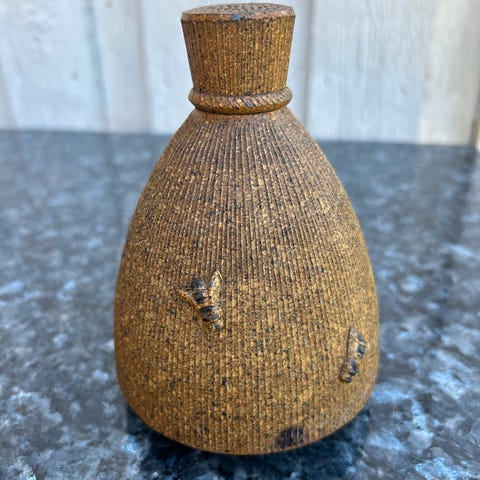 Sparebøssen blev lavet i keramik og måler ca. 23 x 11 cm.