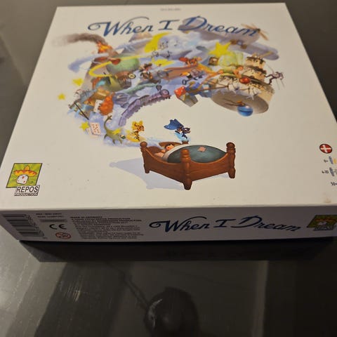 When I Dream byder på en masse gode stunder med hele familien. Børnene helt nede fra 8 år kan sagtens spille med. Her får I en sovemaske med i spillet, der skal tages på. Den spiller der har masken på, skal nu begynde at drømme. De andre spillere er så drømmeånder, der skal prøve at beskrive deres kort så nøje som muligt. Det er dog ikke bare lige til! Drømmeånderne må kun bruge ét enkelt ord til at beskrive deres kort med. Nu skal spilleren med sovemasken på, så forsøge at tyde den drøm som spilleren drømmer om, ved hjælp af drømmeåndernes enkelte ord.
