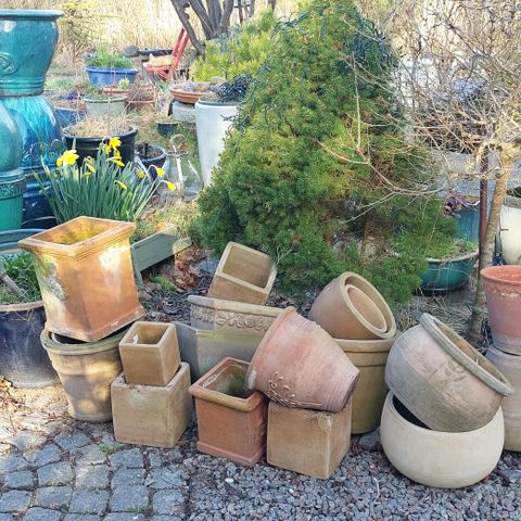 Jeg har terracotta Store som små. Mange fine havekrukker med og uden Blomster og planter. Det kunne fx være til en indflytningsgave eller værtindegave eller såmænd blot en herlig Fødselsdagsgave.