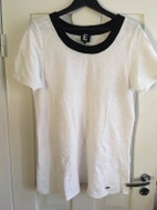 Tunika, E (Fantastisk dansk mærke), str. 40, Hvid / Sort, Bomuld og noget stræk, mærke er klippet ud, Næsten som ny, Mål under arme på tværs: 52 cm.