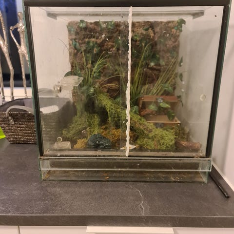 Terrariet sælges med indhold og det skal transporteres som det står 😉