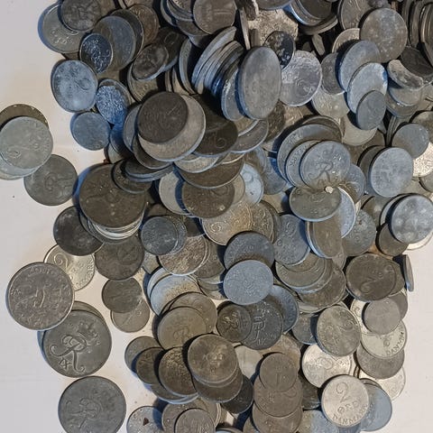 38 Gamle danske zink 5, 2 og 1 øre mønter 1941 - 1971 sælges samlet