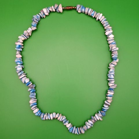 Rigtig smuk halskæde med mange forskellige halvædelsten, slebne natursten og perler med guld look.