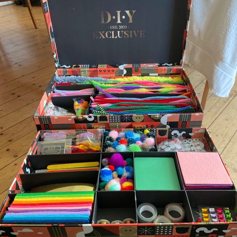 Skøn tegneblok udformet som kuffert med praktisk bære hank