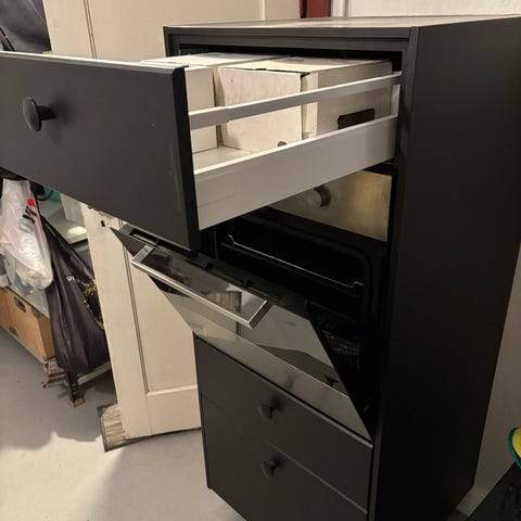 Højskab, HTH, Hvidt med grå sokkel og sokkelskuffe samt 4 hylder