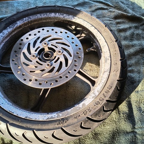 Jeg har denne 10” alufælg og et FLP nav med tromlebremse jeg ikke får brugt alligevel til mit scooter projekt, det er lavet til Honda zoomer men kan også bruges på andre scootere med 10mm hjul aksel. Hvis man hellere vil bruge fælgen med skivebremse kan man købe et nav til skivebremse til 250kr på nettet, jeg skal nok være behjælpelig med at finde de rigtige dele du ønsker til dit projekt 👍🏻