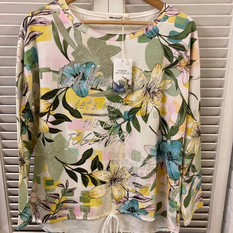 Helt ny ubrugt bluse med flot peace blomstret tryk. Fra røgfrit rent hjem. Købt i OSV i Italien