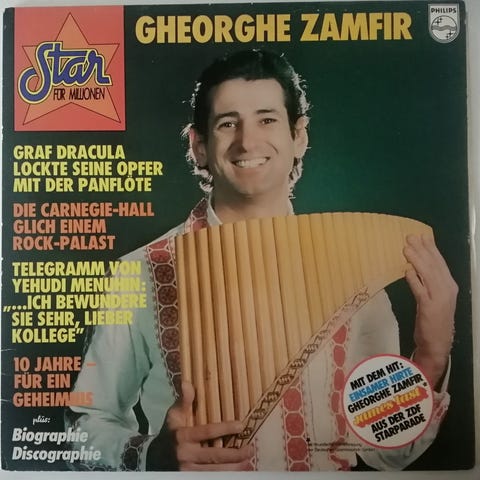 Gheorghe Zamfir, panfløjtens mester, spiller en række musikstykker på LP’en fra 1976.