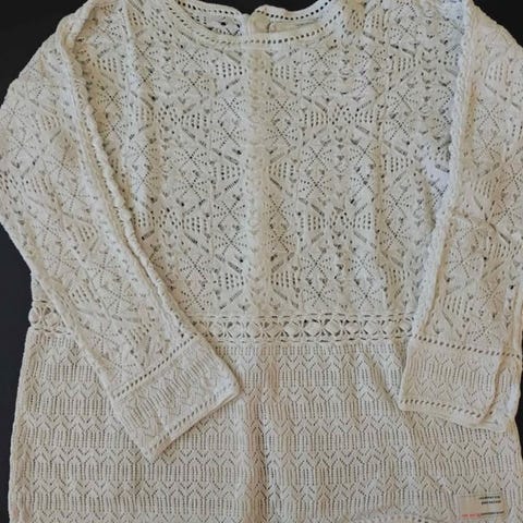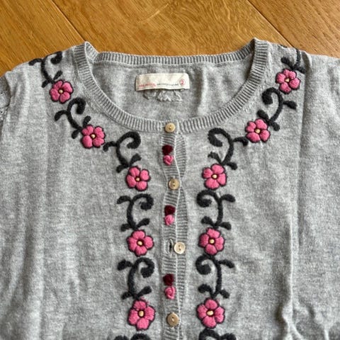 Flot design med mange forskellige "strik-mønstre". Gennemknappet, så kan anvendes både som cardigan og bluse.