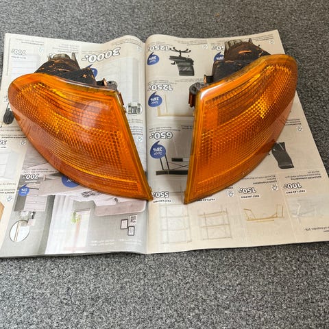 Et sæt hvide og helt nye blinklygter til Opel Astra F. Inkl fatninger