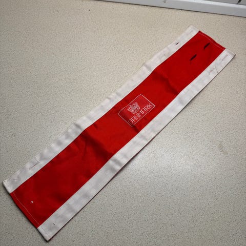 Flot og intakt Militær armbind med 2 røde streger brugt under øvelse af Parti Kampdommer