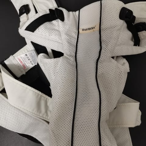 Baby Björn Bæresele. Sælger den, da folk siger, modellen ikke er ergonomisk korrekt for baby. Men hvis man bare bruger den 30 min. om dagen, er det fint for baby.
