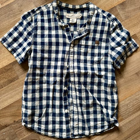 Klassisk og pæn lyseblå skjorte fra H&M i str. 122 – perfekt til festlige lejligheder, skolefotos eller hverdag med lidt ekstra stil ✨
