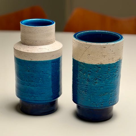 Beskrivelse fra firmaets egen side: "Den ikoniske Rimini Blu-serie, der er blevet produceret kontinuerligt siden 1959, skiller sig ud med sin overfladetekstur. Dekorationen, der er sammensat af skilte, der skaber en fantastisk cirkel af abstrakt-geometriske elementer fikseret under det blå, minder om lysets spil på havets overflade".