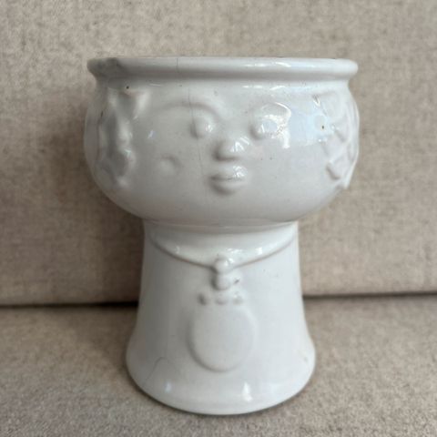 Smuk ældre pottedame-vase. Ingen afslag eller revner. Enkelte kalklinjer indvendigt. Dem fjerner du med eddike:-)