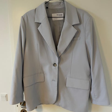 Kun brugt 1 gang rigtig flot blazer fra Selected Femme i relaxed/oversized fit. Størrelse 36 svarende til S.