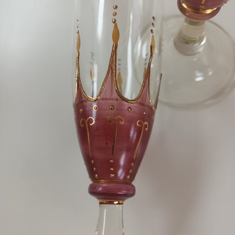 Champagne glas, anvendt en gang til bryllupskørsel. Glas er 24 cm høje.