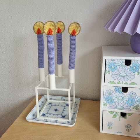 Se mine andre annoncer med hæklet pynt bl.a. også hvide og lyseblå lys.