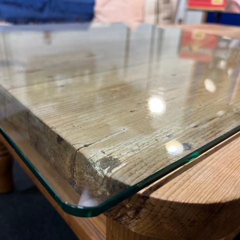 Elegant design med 1,8 cm. Tyk hærdet glas bordplade.