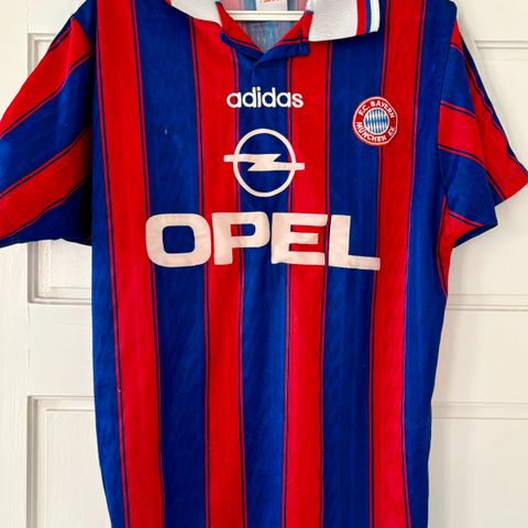 Vintage Bayern München fodboldtrøje fra Adidas med Klinsmann i Small. Model fra 1995 - 1996.