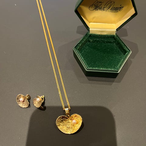 Sælger her mit smukke smykke sæt fra FLOR DANICA bestående af en halskæde samt et par ørestikkers / øreringe. Meget flot stand.