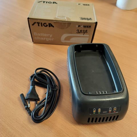 Oplader, Stiga, oplader til batteri Kan passer til plæneklippere, havetraktorer, kultivatorer, sneslynger, motorsave, hækkeklippere, løvblæsere og andre produkter