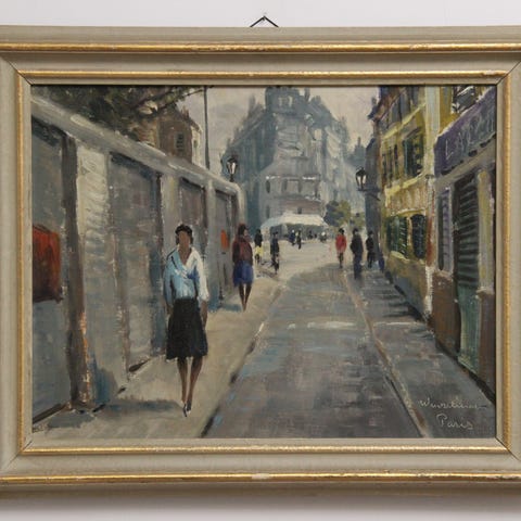 Signeret med kunstnerens monogram: Svend. O nederst til venstre og med titlen Paris nederst til højre. Oliemaleriet går tilbage til slutningen af 1940'erne og 1950'erne og stammer fra kunstnerperioden i Frankrig.