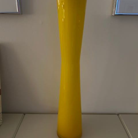 Flot ren gul Holmegaards vase 40 cm høj og hullet 6,5 i diameter