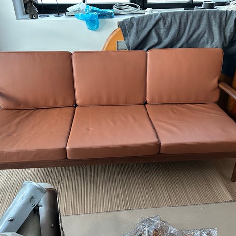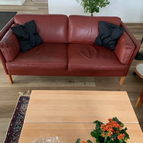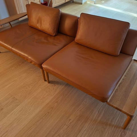 Lækker lædersofa, stel olieret eg, fra bykato, Andersen furniture, model a1. Står rigtig flot.