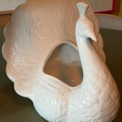 Blomsterskjuler pingvin / and ?? Trådkurv med plastik indeni. 30 cm høj, se str. i forhold til coladåse på foto 4. Ann. nr. T1049