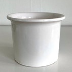 En enkel og stilrene hvidglaseret urtepotteskjuler med udsvejfet kant købt i starten af 80erne. Urtepotten er i en god gedigne kvalitet og er glaseret indvendig som udvendig med uglaseret bund.