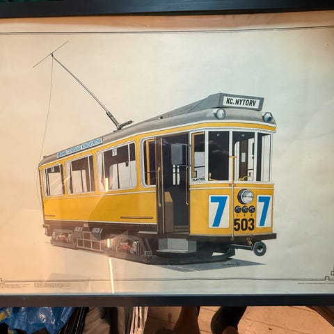 Sporvogns plakat indrammet, mål . 65 x 48,5
