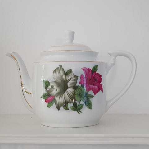 Vintage tepotte med guldkant og Bast håndtag