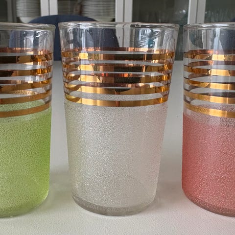 Likørglas/rakkerglas?, Mundblæst med fransk lilje, H 12,5 cm Top Ø 5,5 cm bund Ø 7cm, indesluttet boble i stilken, ca 1890 ingen skader.