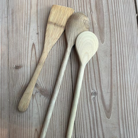 Raadvad køkkenredskab med træskaft og stålnitter