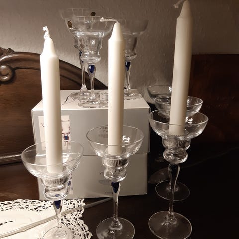 Lysestagerne er en del af glasserien Octime fra franske Luminarc / Arcoroc og er super praktiske da de både bruges til alm. lys, små bloklys samt som fyrfadsstager og kan stables, så de ikke fylder noget i skabet, når de ikke er i brug.