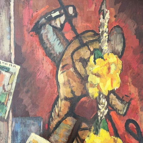 Olie på masonit plade. 1950