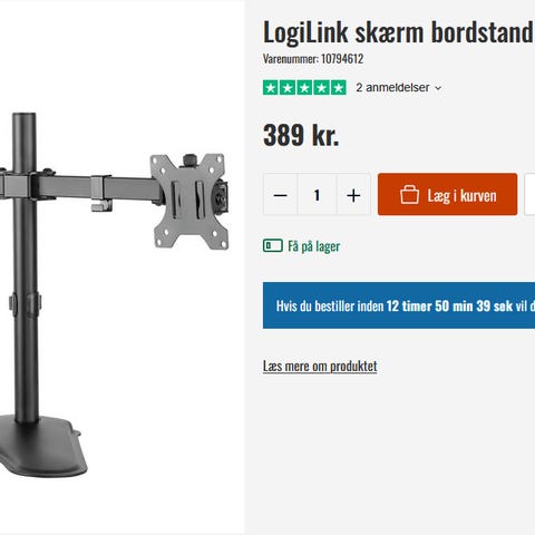 Kan holde de fleste typer skærme med et standard VESA beslag (4 skruehuller på skærmen i et kvadrat).
