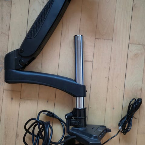 Kan justeres op og ned og har indbygget ledningskjuler. Skærme kan frit dreje til siderne.