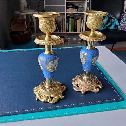 Gamle franske lysestager købt på en auktion.