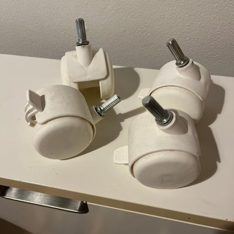 4 stk. sorte hjul til opskruning i f.eks. stol, diam. 4 cm.