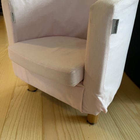 Fin lænestol fra Hoppekids i lyserød, stoffet kan tages af og vaskes.