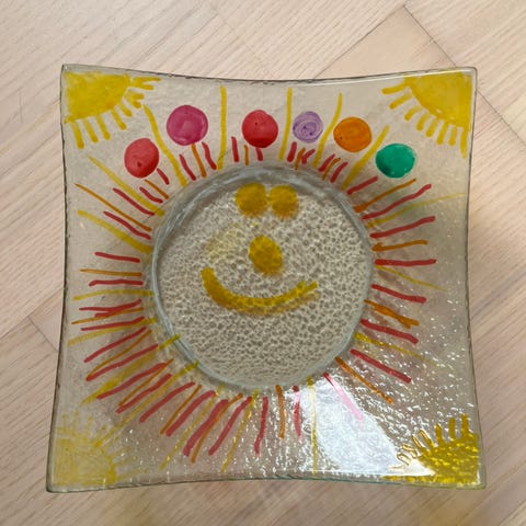 Smukt fad i rosafarvet glas. Måler 15x35 cm. Højde 2,5 cm. Fremstår i pæn stand med almindelige brugsspor.