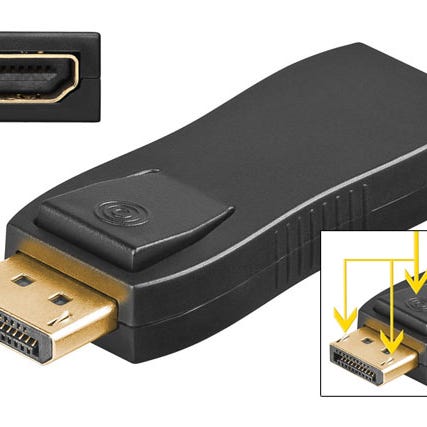 Aktiv konverter der bruges til at konvertere videosignalet fra en computer, spillekonsol eller tv-boks med HDMI udgang til en skærm med DisplayPort indgang. Lyden bliver også ført med over.