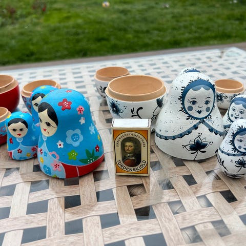Unik og smuk babushka dukke. Består af 9 forskelligt udseende dukker. Købt i udlandet.