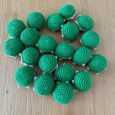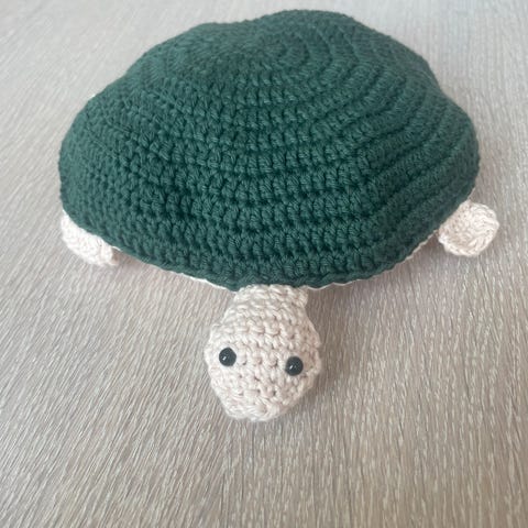 Skildpadde vendespil med 24 unger, kunsthåndværk, Sødt og sjovt hæklet skildpadde-vendespil med 24 små unger indeni skildpadde-moderen, lige til at tage ud og spille med. :-) Skildpadde-moderen måler 13x22 cm og ungerne 3x3 cm. Kan laves i valgfrie farver. :-)